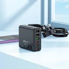 • تدعم الشحن السريع QC3.0 و PD، وتصل قوتها الإجمالية إلى 75 واط.